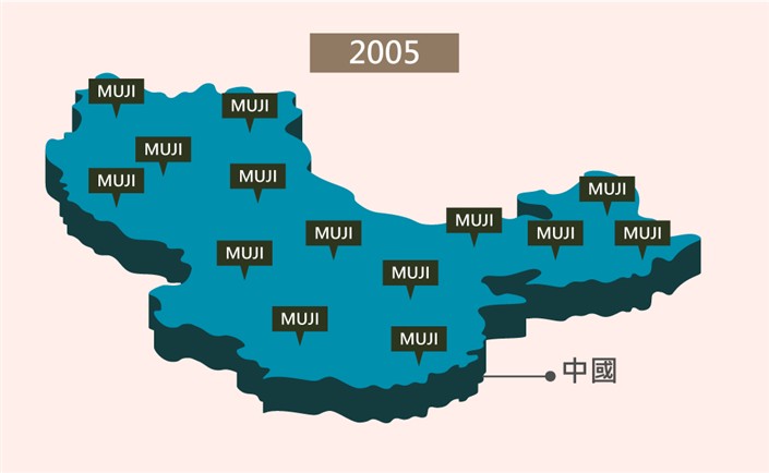 2005年日本無印良品MUJI才到中國開設200多家分店