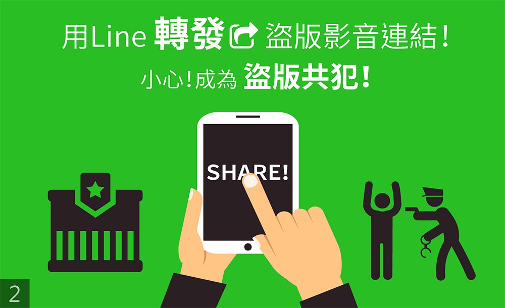 用Line轉發盗版影音連結!小心,成為盗版共犯哦!