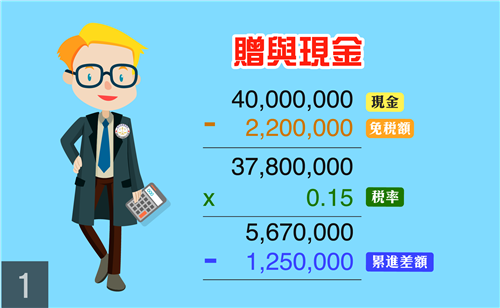 如果是直接贈與4000萬的現金計算,其贈與稅額是442萬。