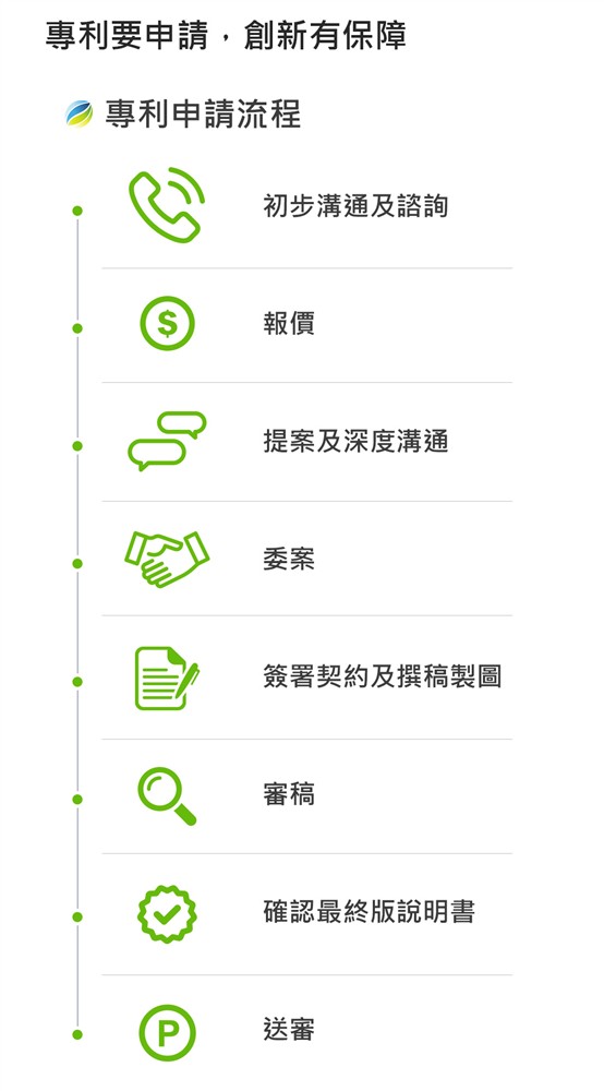 3.專利佈局之諮詢建議、申請可行性評估。